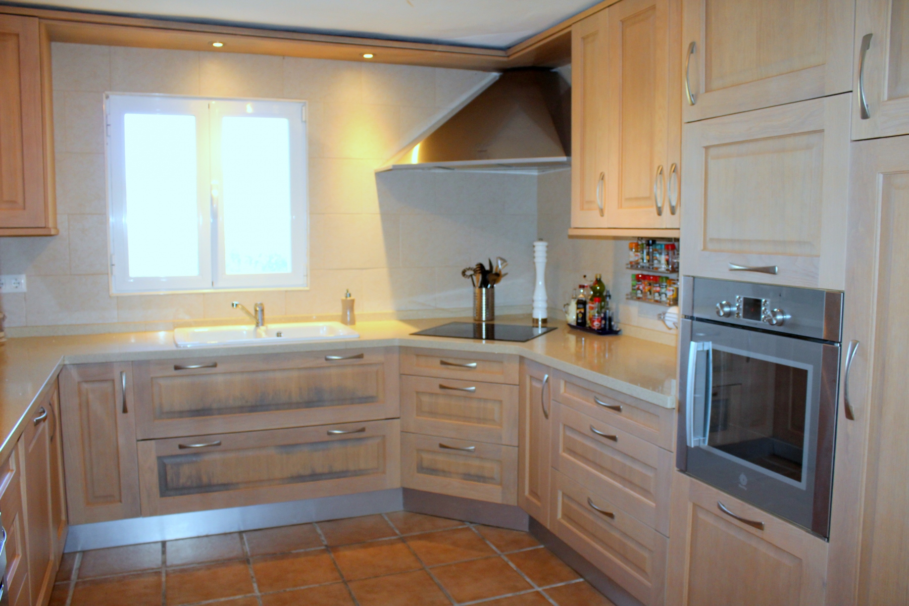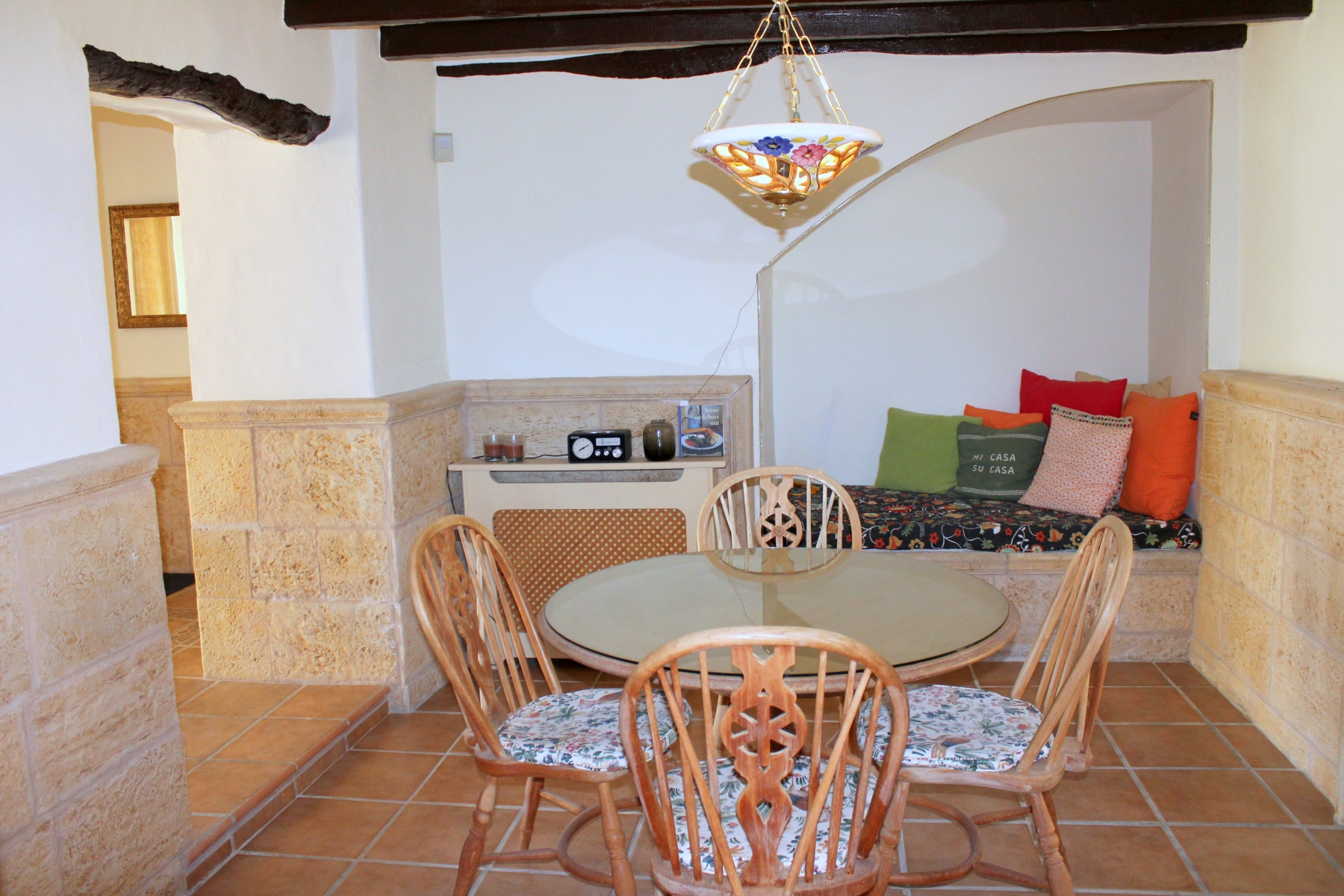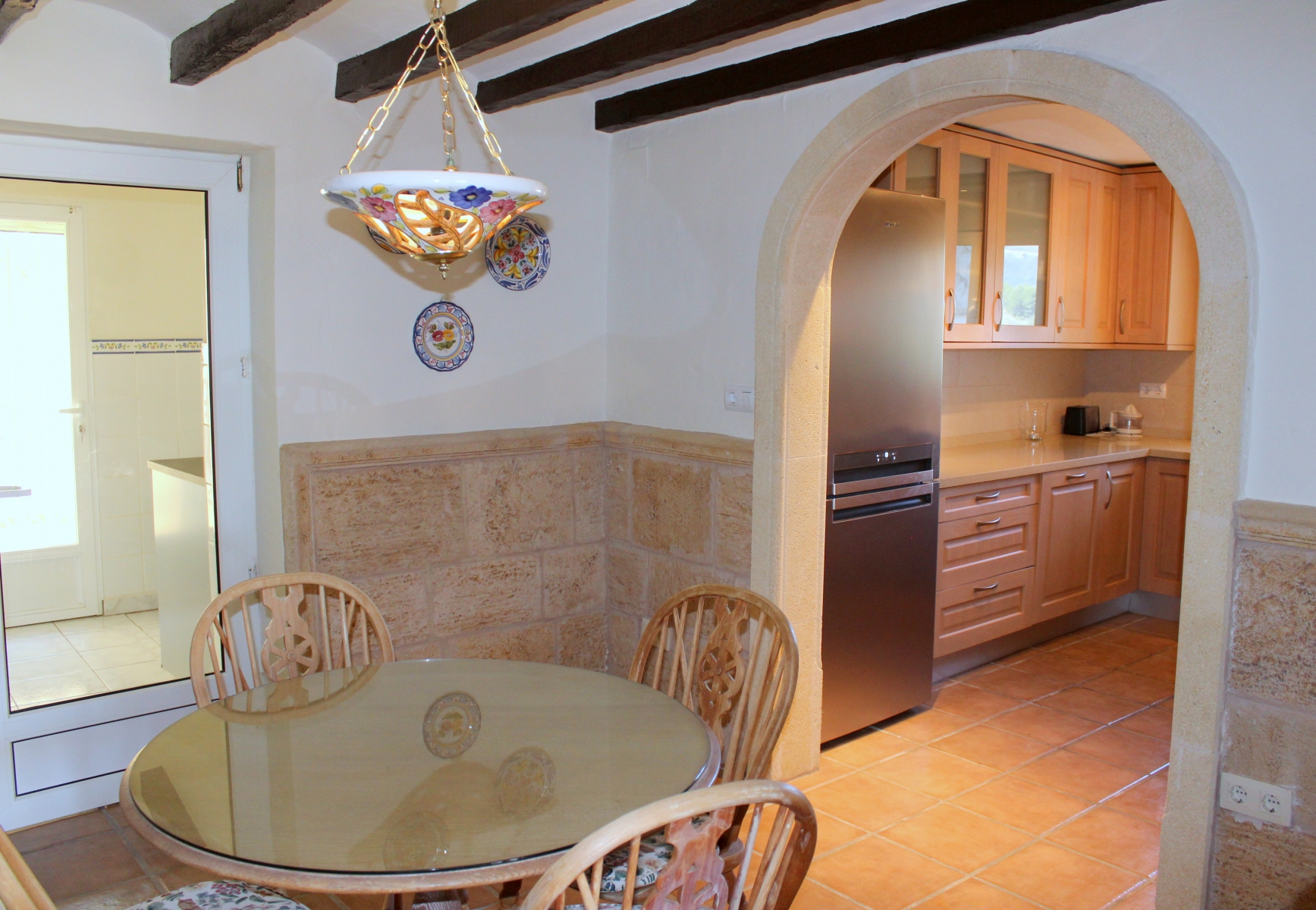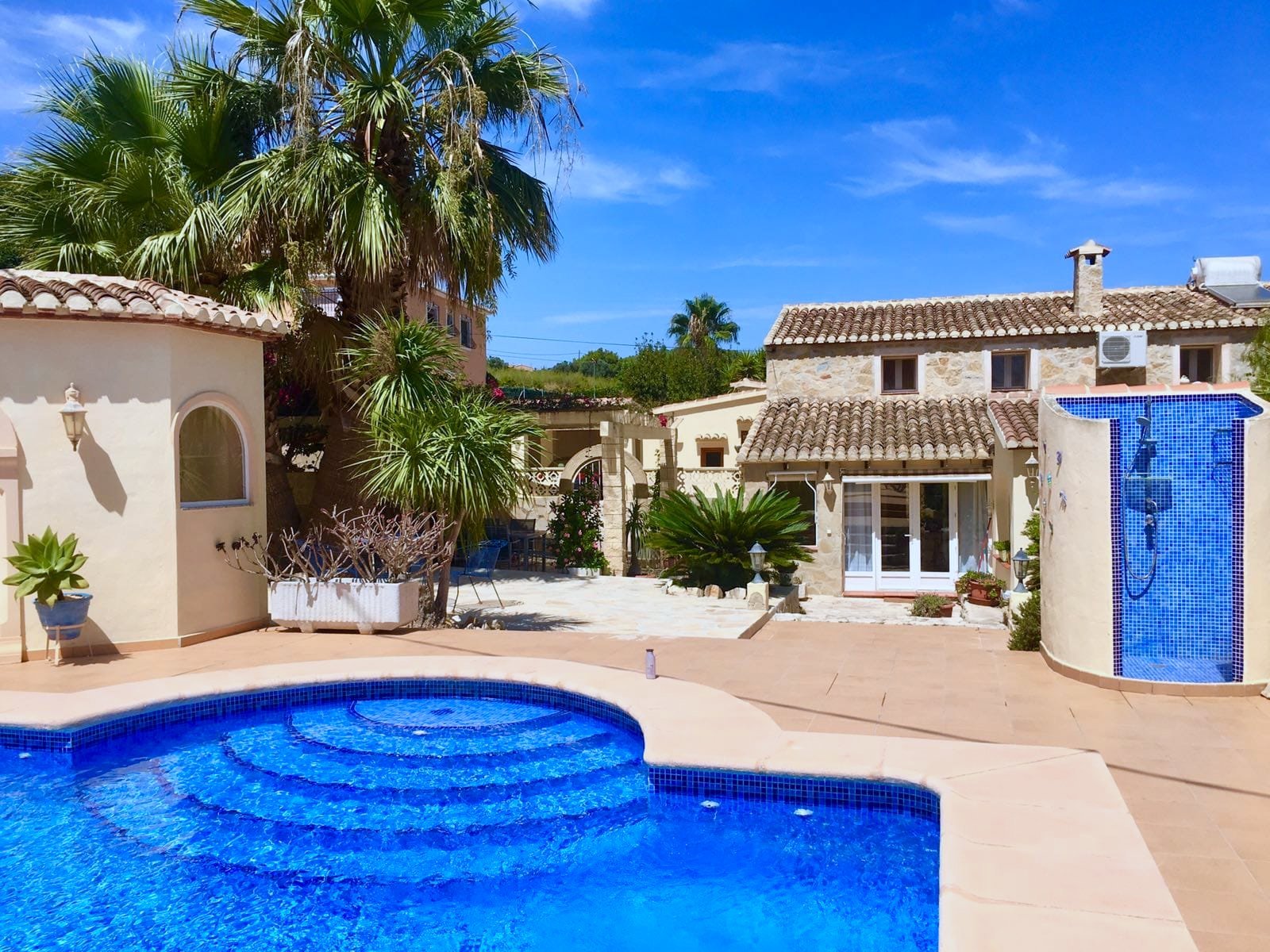 Set on a quiet and private road just 5 mintues drive from the town centre of Moraira is where this charming character house is located. Surrounded by a large plot of Mediterranean gardens, including an orchard with fruit trees, avocado trees, grape vines, a true delight for the eyes and senses, the orange blossom filling the air. This charming house retains its original features, but has also been renovated to offer the comforts of a modern home. Being very well equipped and decorated makes this house feel like a home from home where you can relax and enjoy your holiday. The pool is a large 12 x 6 metres private pool with lots of terrace space for sunbathing, relaxing. There is also good sized outdoor kitchen with BBQ for dining, and a separate covered bar, both providing the perfect environment for socialising outdoors. There is an electric gated private driveway with parking for at least 3 cars. Upon entering this charming house you come into the bright, light and airy, summer lounge, and dining room in the closed in Naya, with floor to ceiling windows facing out to the pool and pretty gardens, being South facing you can enjoy all day sun until sunset. There is an inviting open fireplace for the winter months, surrounded by the local Tosca Stone gives a very cosy feeling. Ceiling beams throughout this beautiful house again add to its delightful charm. Moving further into the house there is another lounge with another open fireplace leading into the breakfast room with tables and chairs and open to the large modern, well equipped kitchen with windows looking out to the pool and gardens. Off the breakfast room is the good sized utility room with washing machine and tumble dryer, with an enclosed area for outdoor clothes drying. There is one bedroom downstairs with a double bed and en-suite bathroom. Upstairs is a traditional open area hallway where there is a further two bedrooms with twin beds in each, and a family bathroom. This house has so much character and charm, and is a true delight to enjoy. Highly recommended for a romantic retreat, a family holiday, or a get together of friends.