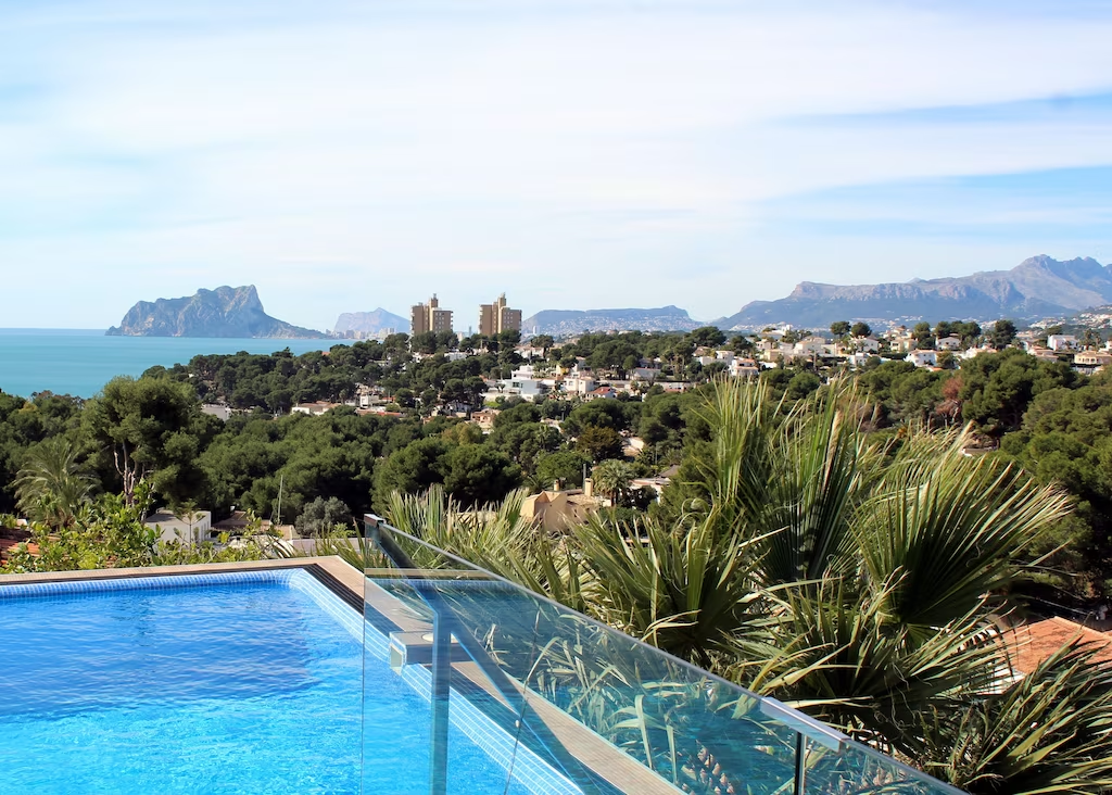 With stunning uninterrupted views from the hills across the sea to the Rock of Calpe, Villa Lumbreras is an idyllic retreat nestled above the El Portet neighbourhood of Moraira. Fully equipped, from sophisticated underfloor heating and separate heating/cooling air conditioning units in every room, to free fibre Internet WiFi throughout. This house is ideal for both the summer and winter seasons. With four bedrooms and two separate living areas, this is the perfect house for couples or a family.