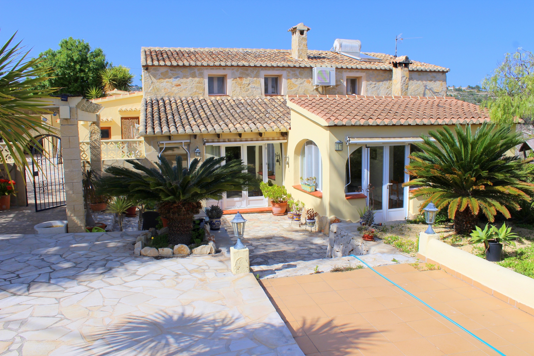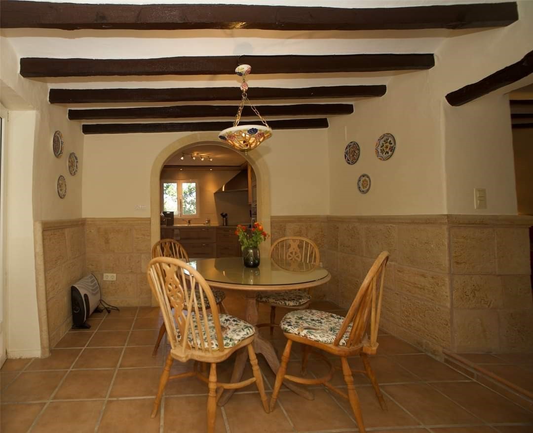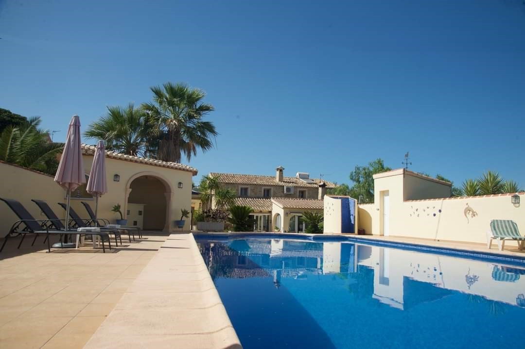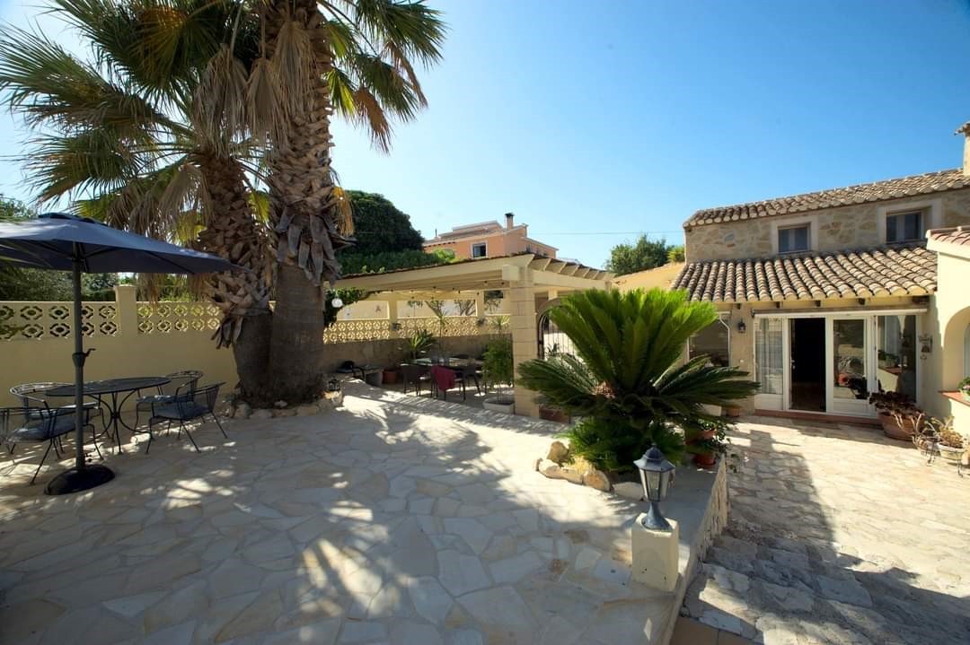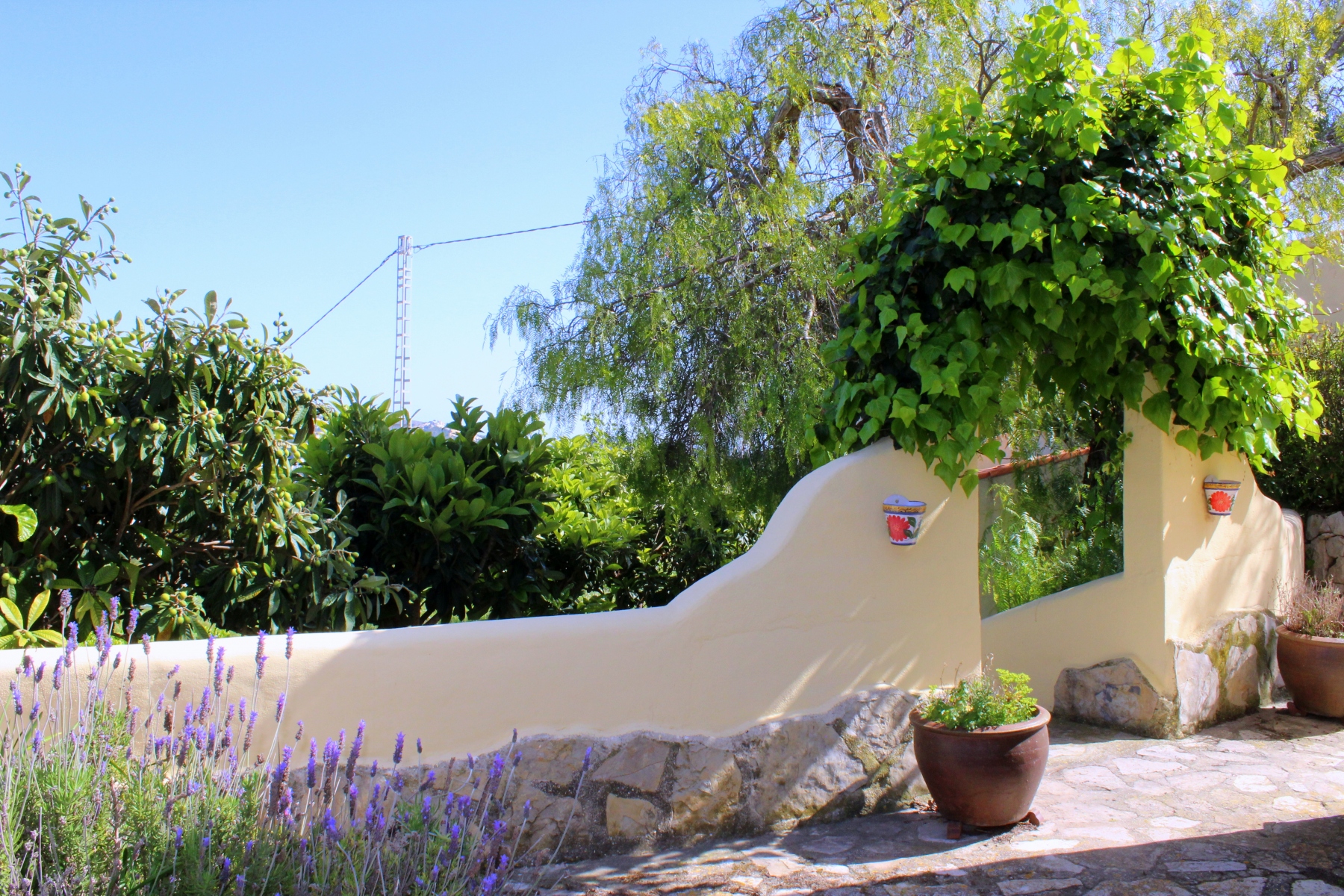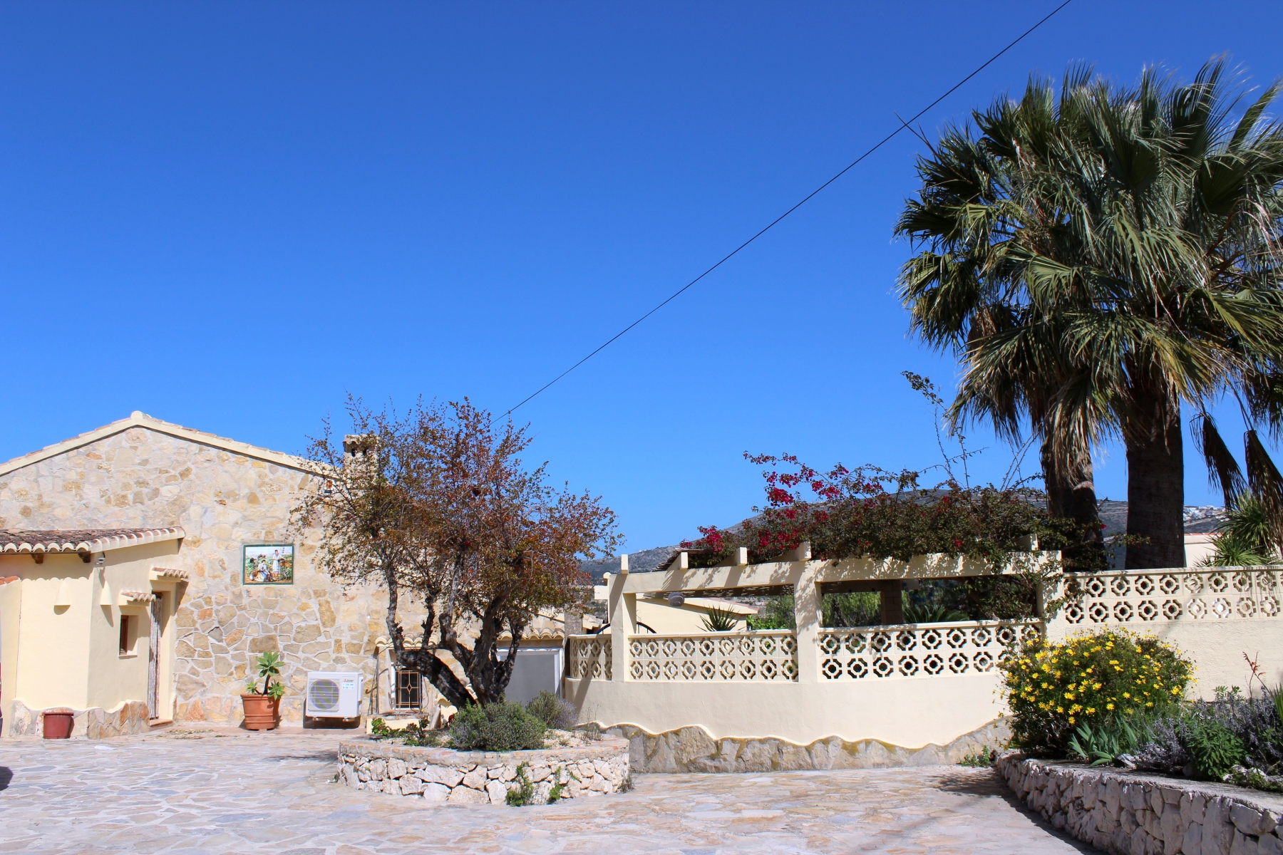 Set on a quiet and private road just 5 mintues drive from the town centre of Moraira is where this charming character house is located. Surrounded by a large plot of Mediterranean gardens, including an orchard with fruit trees, avocado trees, grape vines, a true delight for the eyes and senses, the orange blossom filling the air. This charming house retains its original features, but has also been renovated to offer the comforts of a modern home. Being very well equipped and decorated makes this house feel like a home from home where you can relax and enjoy your holiday. The pool is a large 12 x 6 metres private pool with lots of terrace space for sunbathing, relaxing. There is also good sized outdoor kitchen with BBQ for dining, and a separate covered bar, both providing the perfect environment for socialising outdoors. There is an electric gated private driveway with parking for at least 3 cars. Upon entering this charming house you come into the bright, light and airy, summer lounge, and dining room in the closed in Naya, with floor to ceiling windows facing out to the pool and pretty gardens, being South facing you can enjoy all day sun until sunset. There is an inviting open fireplace for the winter months, surrounded by the local Tosca Stone gives a very cosy feeling. Ceiling beams throughout this beautiful house again add to its delightful charm. Moving further into the house there is another lounge with another open fireplace leading into the breakfast room with tables and chairs and open to the large modern, well equipped kitchen with windows looking out to the pool and gardens. Off the breakfast room is the good sized utility room with washing machine and tumble dryer, with an enclosed area for outdoor clothes drying. There is one bedroom downstairs with a double bed and en-suite bathroom. Upstairs is a traditional open area hallway where there is a further two bedrooms with twin beds in each, and a family bathroom. This house has so much character and charm, and is a true delight to enjoy. Highly recommended for a romantic retreat, a family holiday, or a get together of friends.