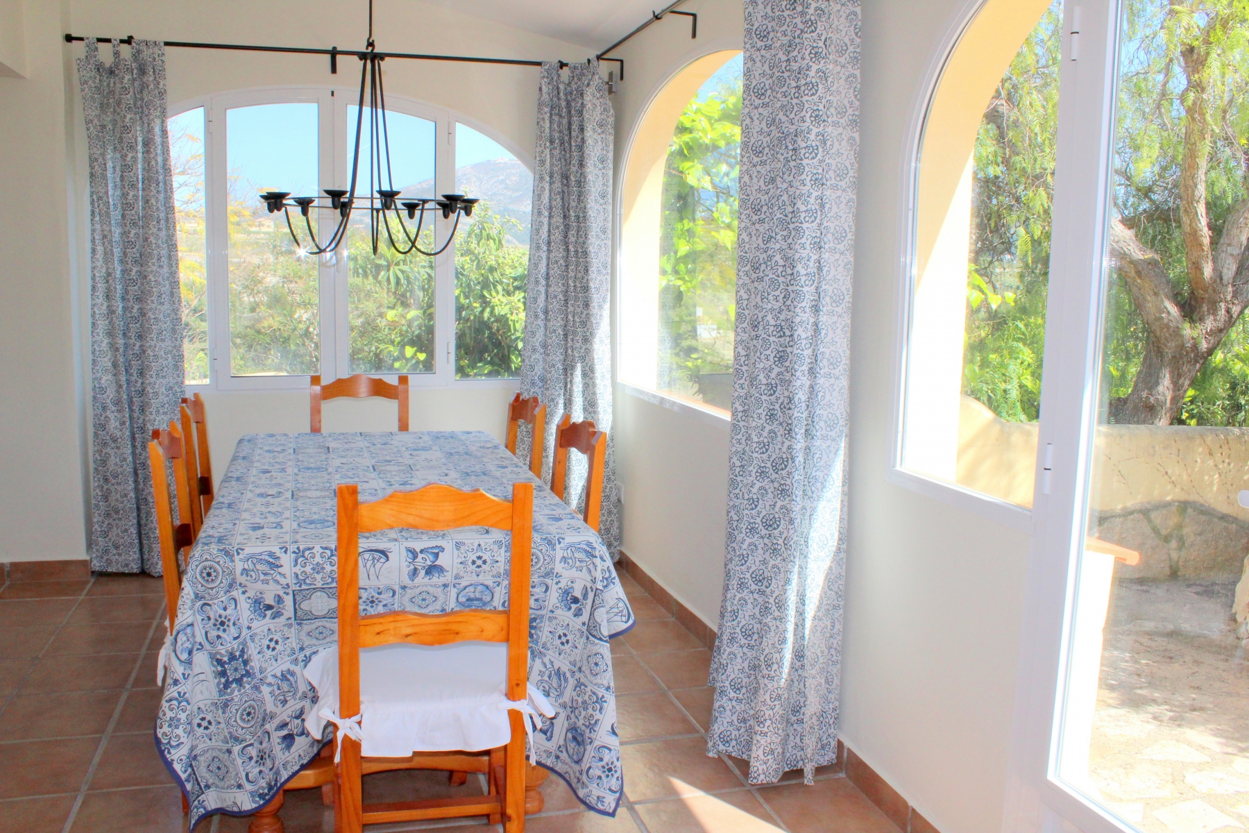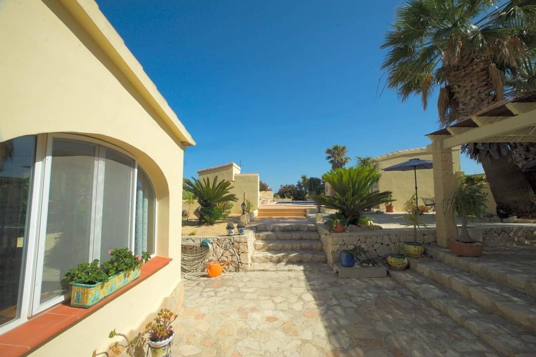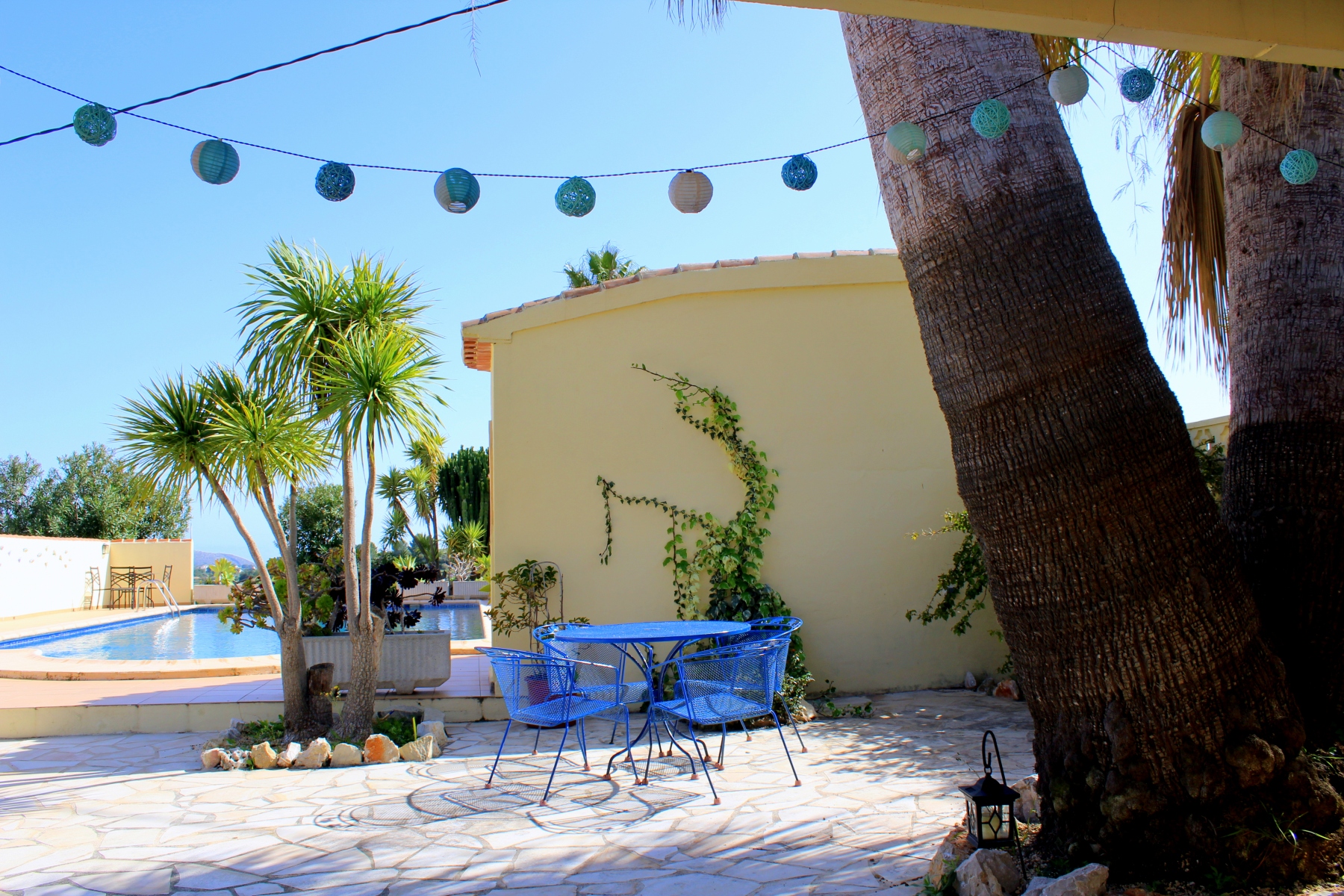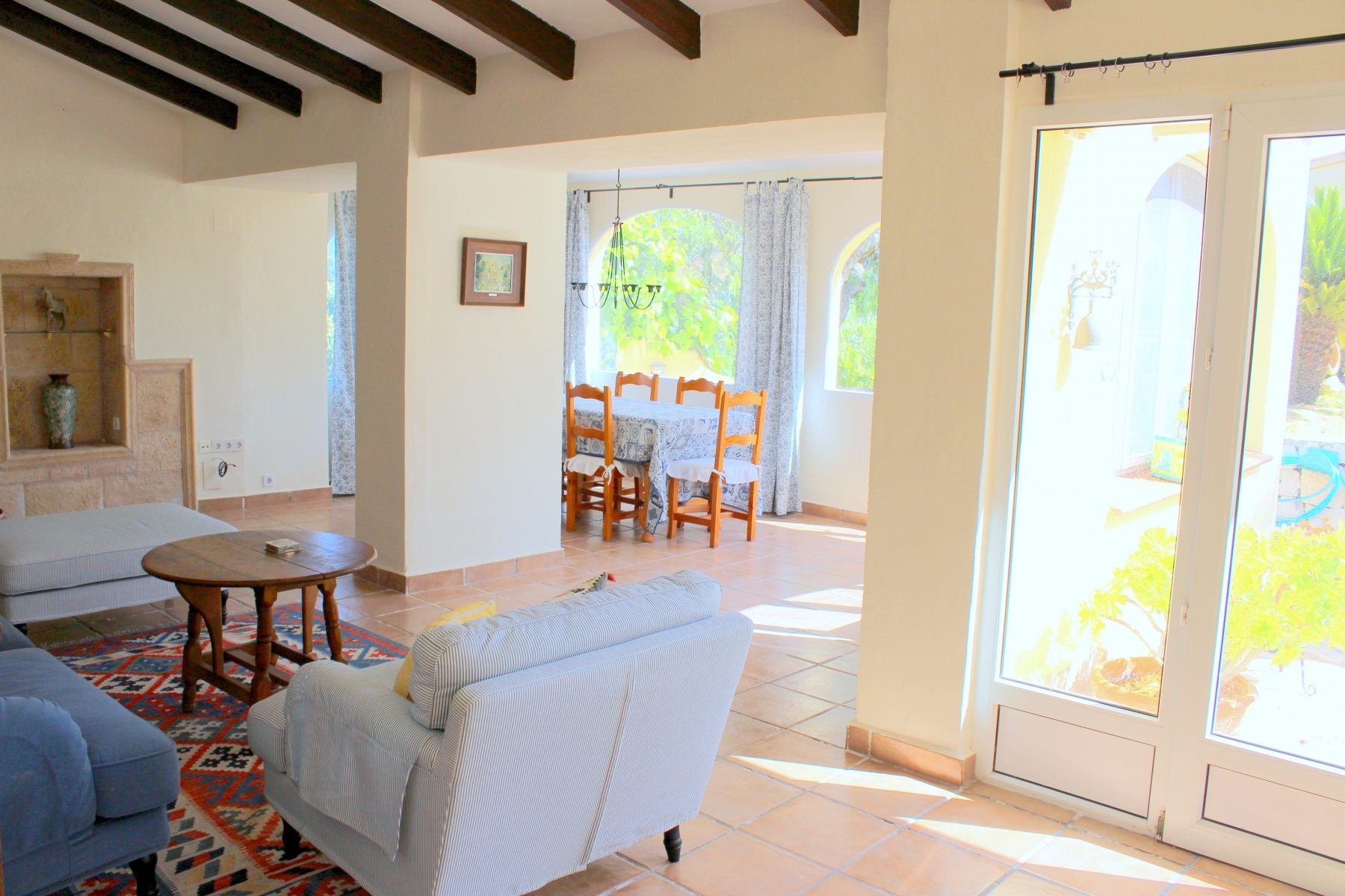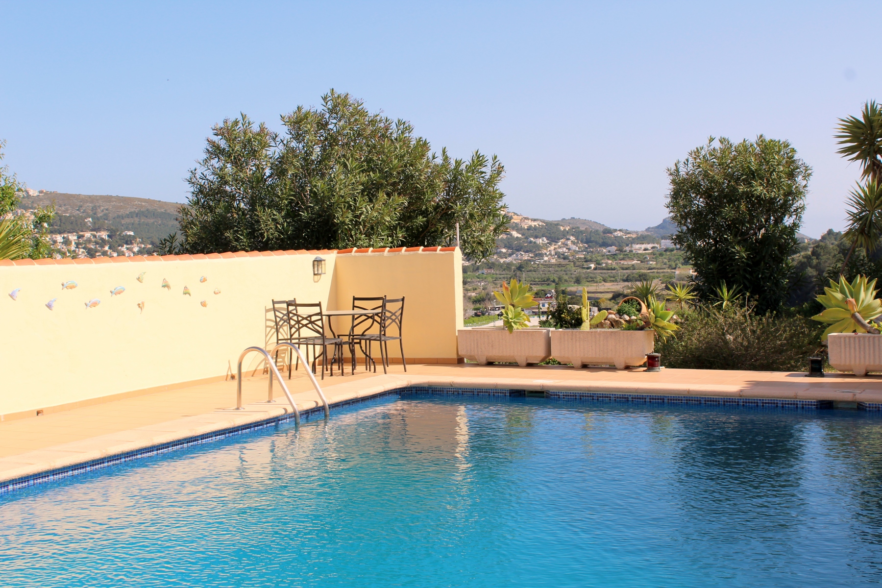 Set on a quiet and private road just 5 mintues drive from the town centre of Moraira is where this charming character house is located. Surrounded by a large plot of Mediterranean gardens, including an orchard with fruit trees, avocado trees, grape vines, a true delight for the eyes and senses, the orange blossom filling the air. This charming house retains its original features, but has also been renovated to offer the comforts of a modern home. Being very well equipped and decorated makes this house feel like a home from home where you can relax and enjoy your holiday. The pool is a large 12 x 6 metres private pool with lots of terrace space for sunbathing, relaxing. There is also good sized outdoor kitchen with BBQ for dining, and a separate covered bar, both providing the perfect environment for socialising outdoors. There is an electric gated private driveway with parking for at least 3 cars. Upon entering this charming house you come into the bright, light and airy, summer lounge, and dining room in the closed in Naya, with floor to ceiling windows facing out to the pool and pretty gardens, being South facing you can enjoy all day sun until sunset. There is an inviting open fireplace for the winter months, surrounded by the local Tosca Stone gives a very cosy feeling. Ceiling beams throughout this beautiful house again add to its delightful charm. Moving further into the house there is another lounge with another open fireplace leading into the breakfast room with tables and chairs and open to the large modern, well equipped kitchen with windows looking out to the pool and gardens. Off the breakfast room is the good sized utility room with washing machine and tumble dryer, with an enclosed area for outdoor clothes drying. There is one bedroom downstairs with a double bed and en-suite bathroom. Upstairs is a traditional open area hallway where there is a further two bedrooms with twin beds in each, and a family bathroom. This house has so much character and charm, and is a true delight to enjoy. Highly recommended for a romantic retreat, a family holiday, or a get together of friends.