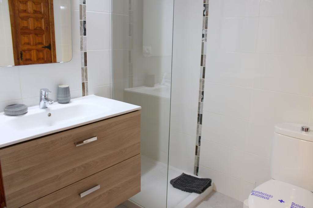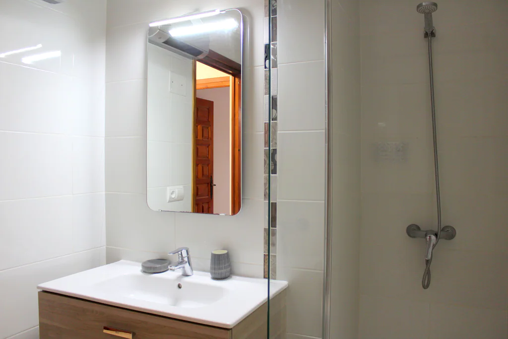 The Bungalow has two bedrooms, one with a double bed, and the other with two single beds, with a newly renovated modern bathroom in between. Both bedrooms have fitted wardrobes, and enjoy hot/cold air conditioning.