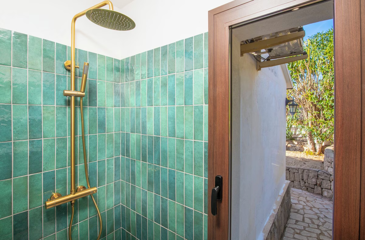 The lovely Villa Caspio is surrounded by good sized terraces around the large private pool, with Mediterranean gardens, and a gazebo shaded with grape vines as you sit at the outdoor dining table set for 6 people to enjoy eating al fresco, and relaxing with a chilled drink. You also have a gas BBQ set beside the dining table. Relax, eat, drink and enjoy.