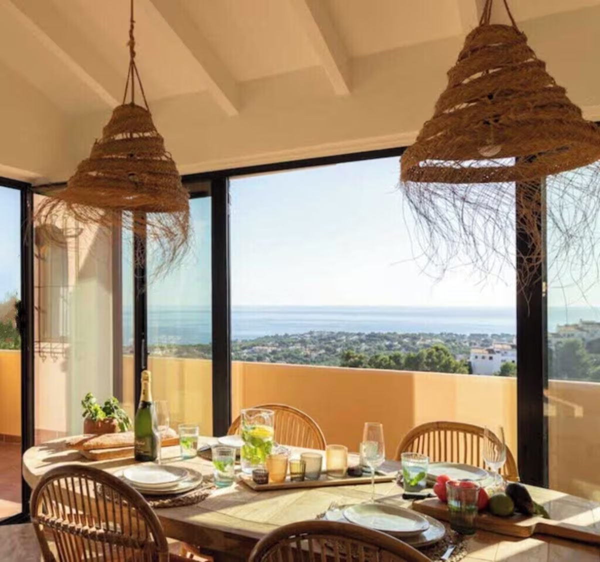 The outside spaces of La Cabaña is a great place to spend relaxing days. The two spacious terraces, one on each level, provide enough space for everyone to find a nice spot in the sun or in the shade. Relax on one of the sun beds and enjoy the Spanish sun and the pleasant sea breeze. End the day with a sundowner on the lounge sofa and watch the stunning sun set across the valley. The location of La Cabaña is also a great plus, you are only a 10-minute drive away from the beautiful town of Moraira with its two sandy Blue Flag beaches, one being the stunning El Portet Bay. Also the bustling towns and villages such as Calpe, Benissa, Jávea, Denia, Altea are just a short drive away. At La cabana you will find everything you need for a relaxing holiday.