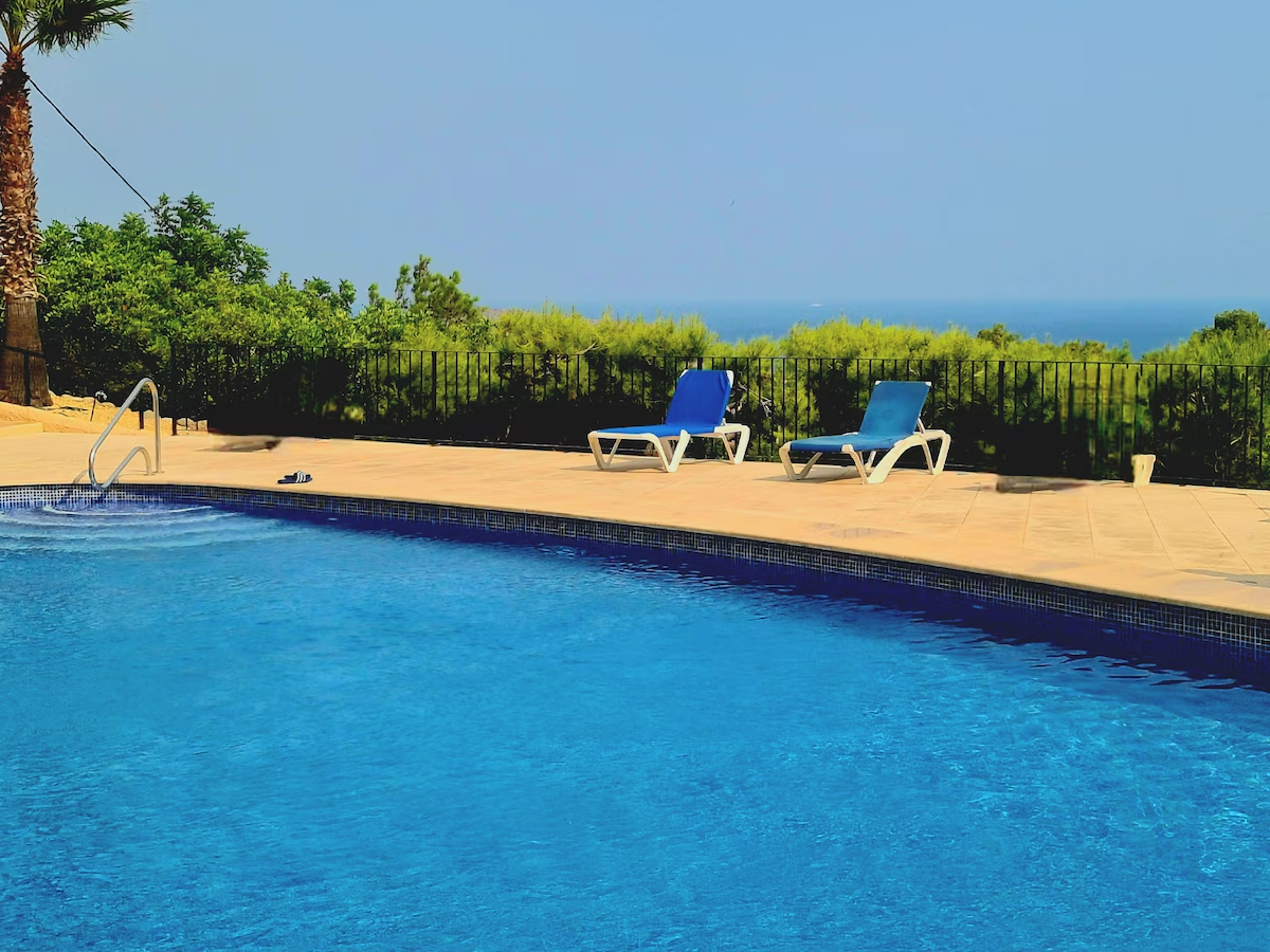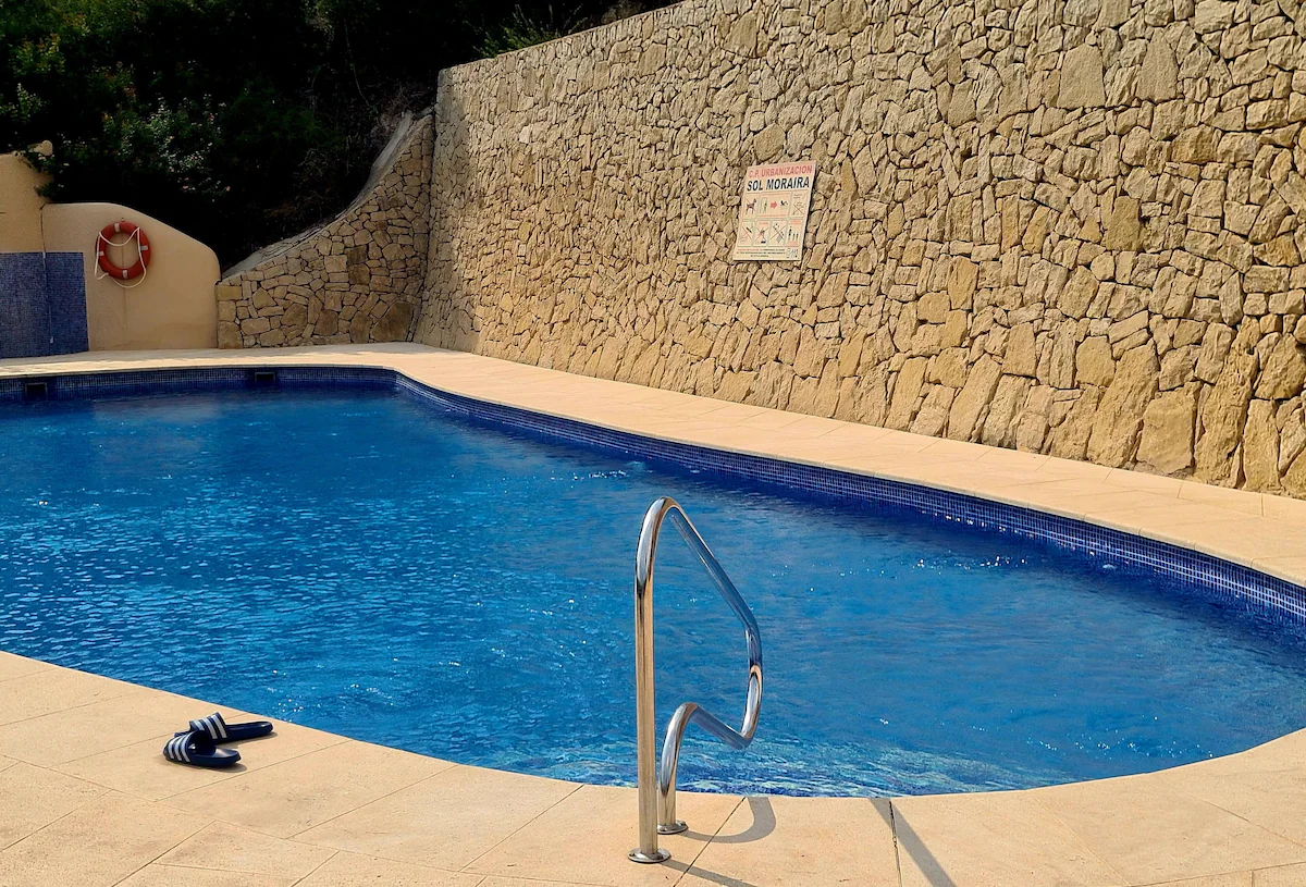 The spacious, communal pool is a short walk away. Please note that there are no sunbeds around the pool.