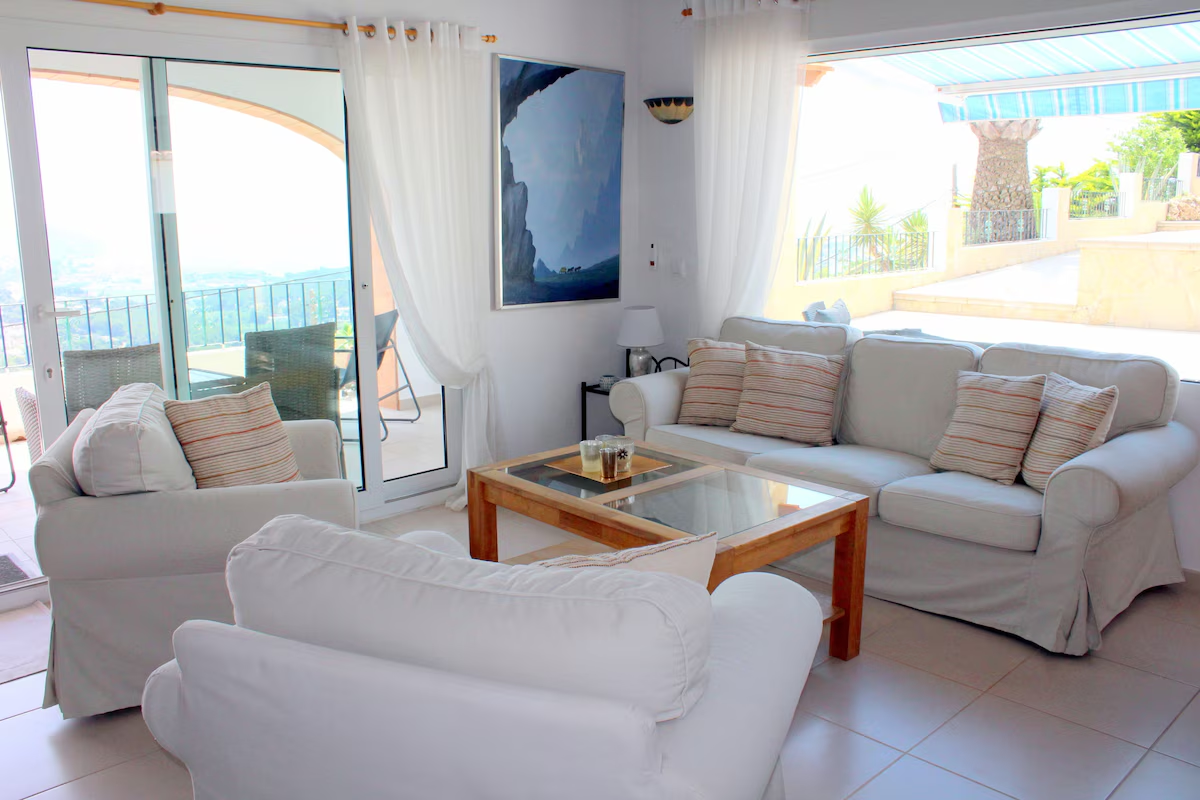 Angela C.Our family had a lovely, relaxing holiday in this beautiful villa. My husband & I travelled with our two sons aged 16 & 21. It was very well equipped and the pool was great with pretty plants and flowers to make the outside space perfect. The outside fridge/freezer was great and the location was so peaceful with the most amazing, panoramic views. It was totally private and you had great views no matter where you were. It was very well equipped and clean and all looked new. Paula, the manager was lovely and only a call away and always on hand to help with any questions. We hired a car from Drivalia at the airport and they were very good. A minibus was waiting at the airport to take us the short drive to their rental company and Paula met us when we arrived and took us up to the villa. You do need a car when you are there, although it is only a few minutes drive into Moraira and there is a large free car park where you could always easily park. (bearing in mind this was not the school holidays though). This villa has everything you need for a fabulous holiday and we would certainly highly recommend it. Moraira is lovely with a really nice feel to it, both in the day and at night. We had a lovely walk into El Portet which is a small resort nearby and definitely worth a visit.